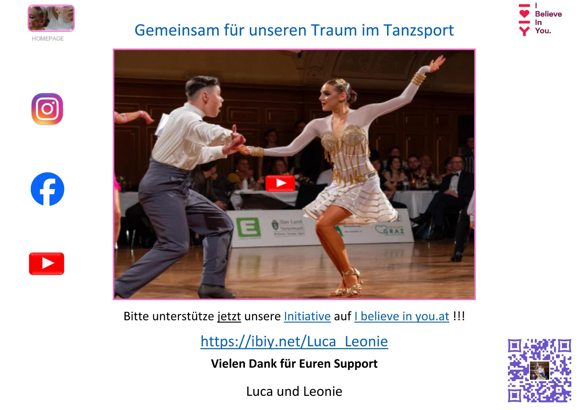 Luca und Leonie sind für jede Unterstützung sehr dankbar. Vor ihnen liegt ein besonders kostenintensives Tanzjahr mit vielen Turnieren, Reisen und Trainings. Jeder Beitrag – egal in welcher Höhe – hilft ihnen, ihren Traum im Tanzsport weiter zu verfolgen.
